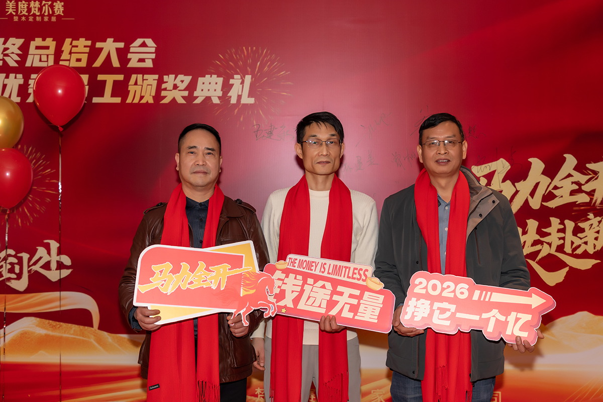 感谢每一位员工的辛勤付出,感谢合作伙伴与客户的信任支持。2026,让我们继续携手,以木为媒,以心定制,共筑美好生活,共赴崭新篇章!